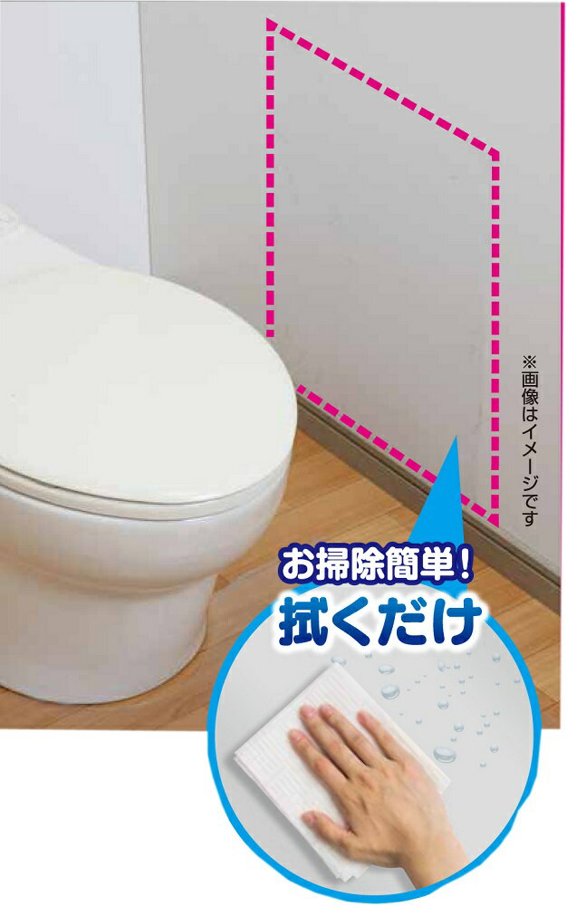 『消臭・防水シート』は、うっかり壁を汚してしまっても、ウエットシートやトイレットペーパー等でサッと拭くだけでOK!消臭加工を施しているのでアンモニア臭を約99%カットします(使用状況により差がありますが消臭効果の目安は約6ヶ月です)。