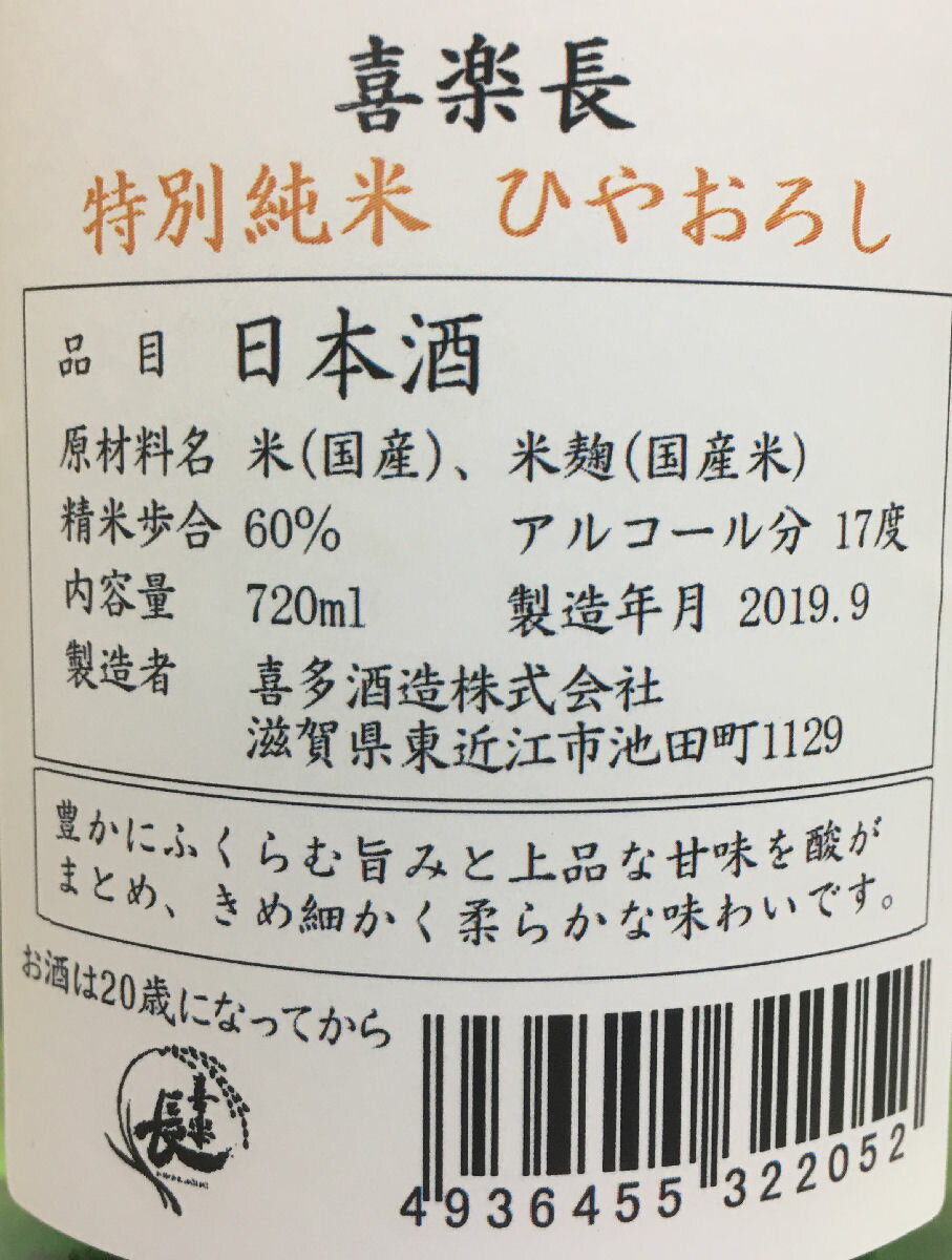 喜楽長 【特別純米 ひやおろし】 720ml 滋賀県(喜多酒造) 柔らかな味わいと、喉越しの良さ、ひやおろし 後味も爽やかな地酒!喜楽長ひやおろし! 精米歩合:60% アルコール分:17度 製造年月:2019年9月 商品価格:1,377円 レビュー件数:0件 レビュー平均:0(5点満点) 楽天で購入 トップページへ