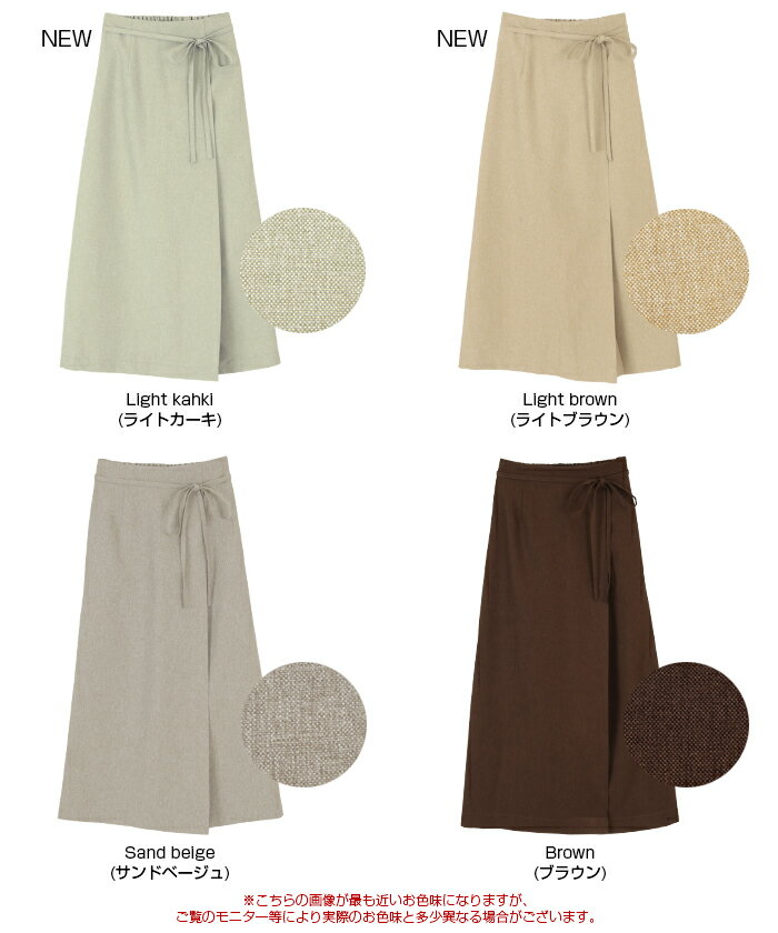 リネンライクラップAラインリボン付スカート/リネンライク生地のナチュラルな雰囲気が今っぽい/ボトムス/レディース/スカート/ロング丈/ラップ風デザイン/リネンライク/バックウエストゴム/セットアップ/シンプル【メール便可/100】