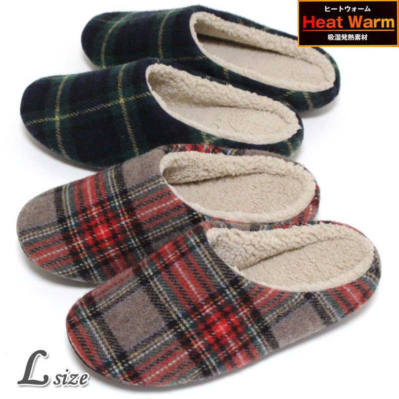 暖かいルームシューズ 起毛タータンソフト Lサイズ おしゃれ 室内履き 上品 ヒートウォーム 吸湿発熱素材 洗える(手洗できます。)